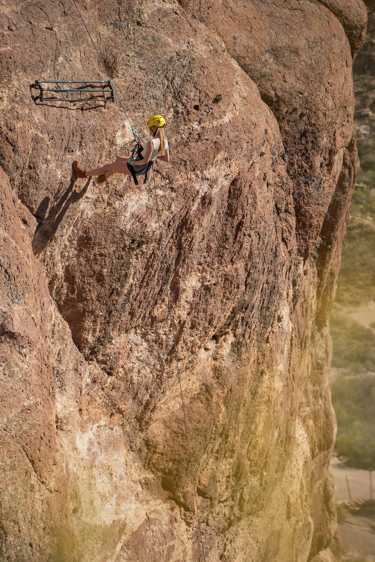 La jornada comienza con un trekking por senderos serpenteantes que te introducirán en el corazón de formaciones rocosas milenarias. A cada paso, las vistas panorámicas te irán revelando la inmensidad del paisaje sanrafaelino, con sus tonos ocres y verdes contrastando con el azul del cielo. Luego, la aventura se eleva con la escalada: de la mano de guías expertos, ascenderás por paredes rocosas, sintiendo la roca bajo tus manos y superando cada desafío con una vista cada vez más impresionante. La satisfacción al llegar a la cima es indescriptible. Finalmente, la emoción culmina con el rapel: un descenso controlado por cuerdas que te permitirá sentir la verticalidad de la montaña mientras te deslizas hacia la base, con la perspectiva única de la naturaleza salvaje de San Rafael a tus pies.